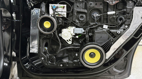 The factory firewall woofers were replaced with Helix Compose i5 8" mid-woofers, which improved the bass response and added more impact to the front sound stage.